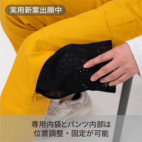 付属のプロテクター収納袋を使用することでプロテクターの位置調整、固定が可能です。